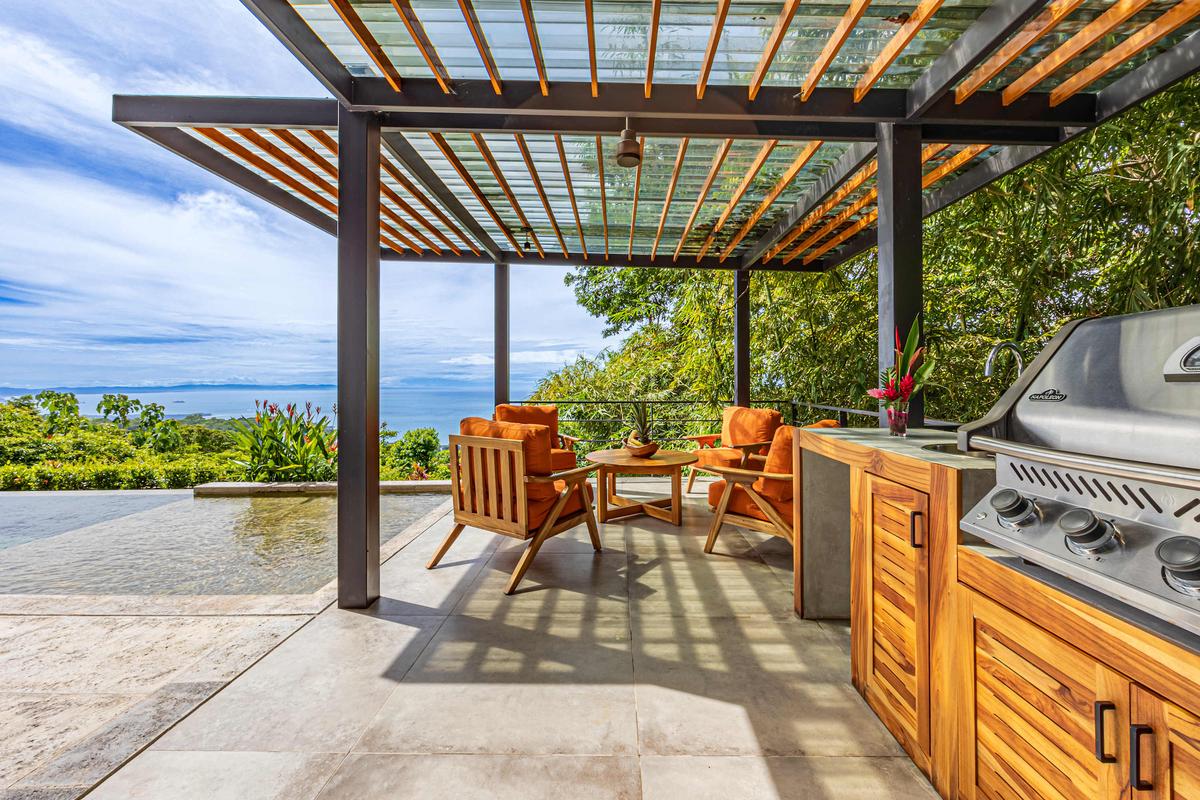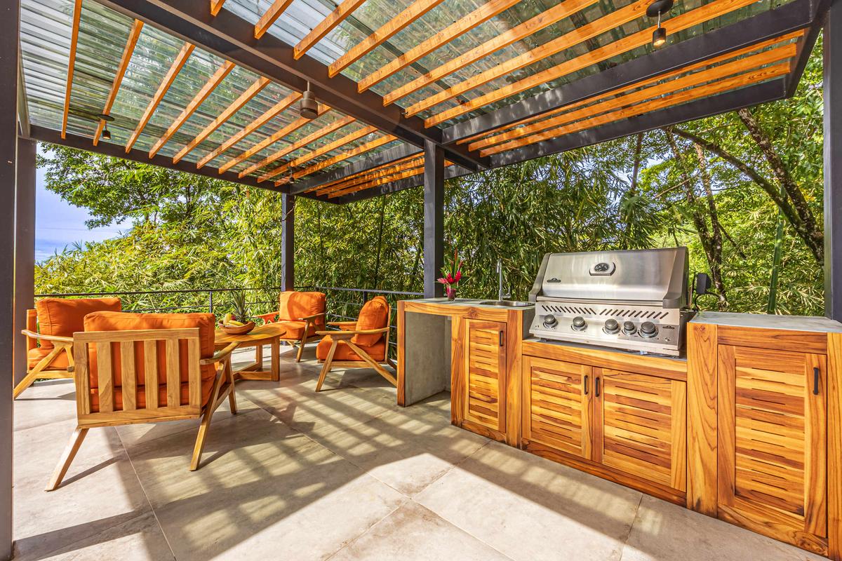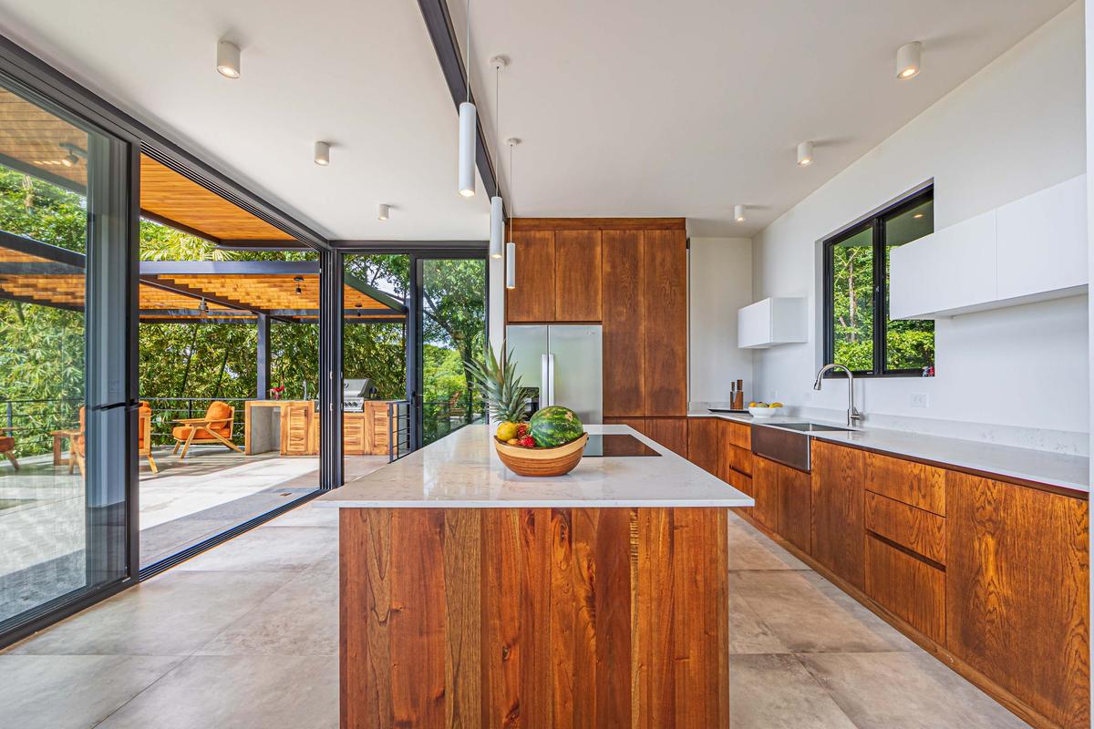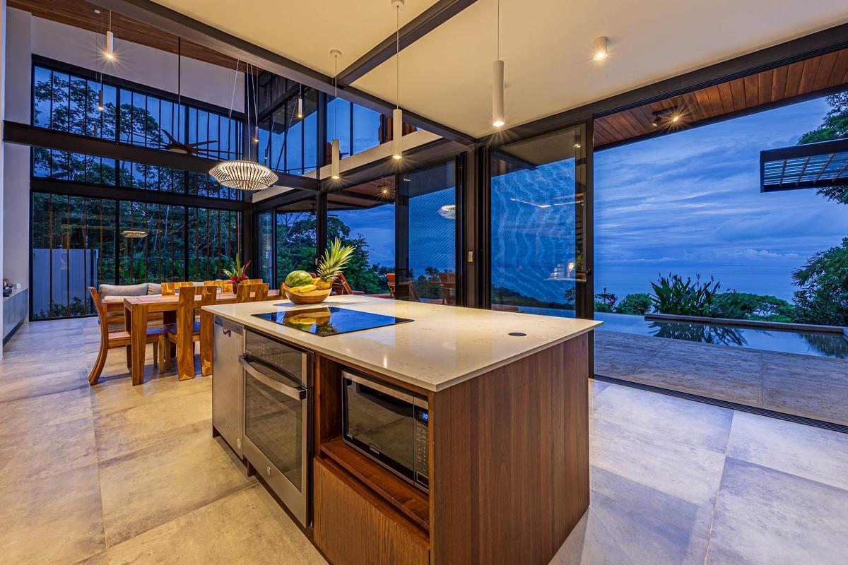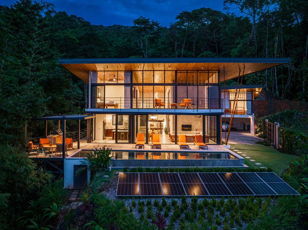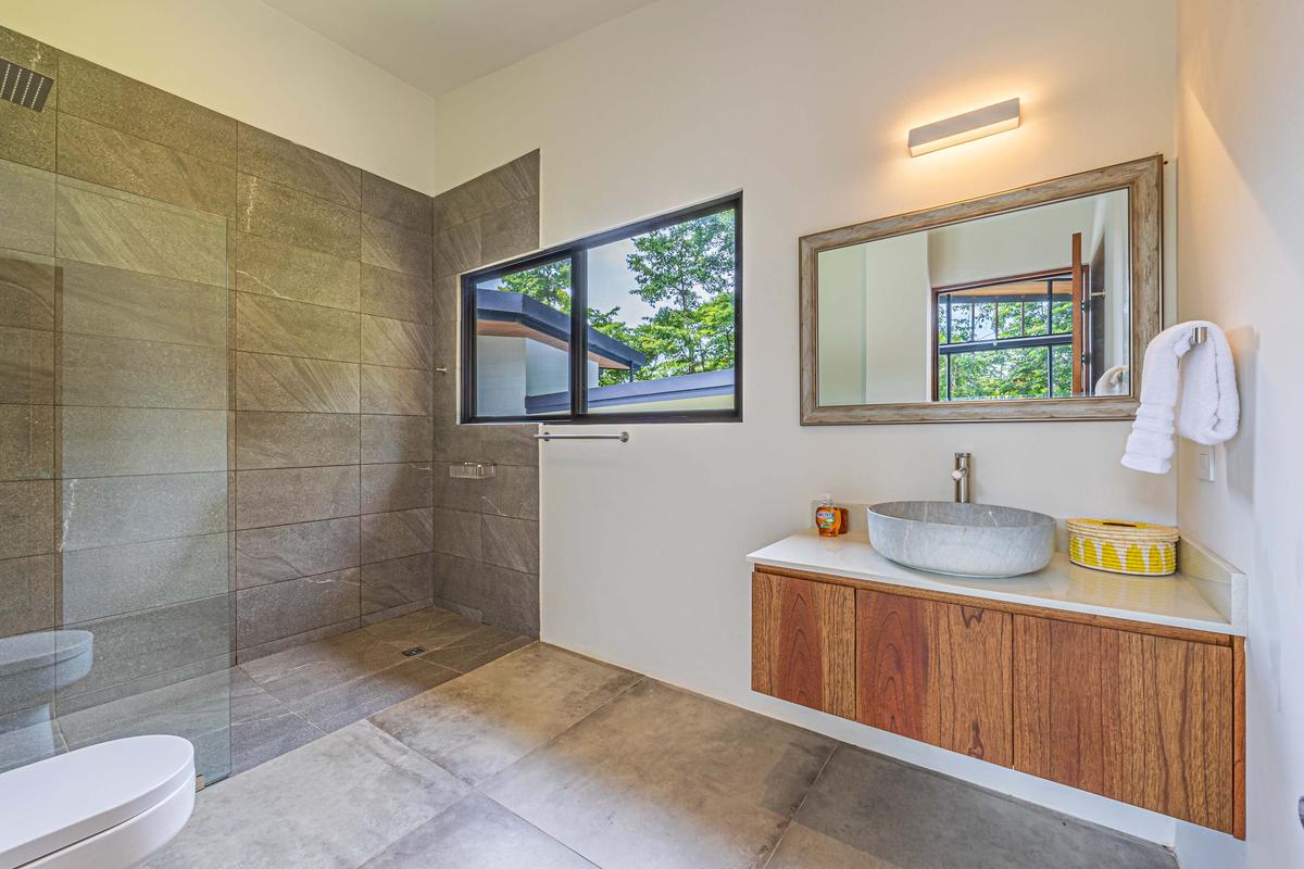 The natural surroundings and outdoor spaces are a true oasis. From the swimming pool to the terraces and outdoor dining area, every corner invites relaxation, connection, and awe at the local wildlife—toucans and howler monkeys are frequent visitors. The property is part of the exclusive Costa Verde Estates, a private and secure community spanning over 1,250 acres of protected rainforest, where privacy and immersion in nature are at the heart of the experience.
