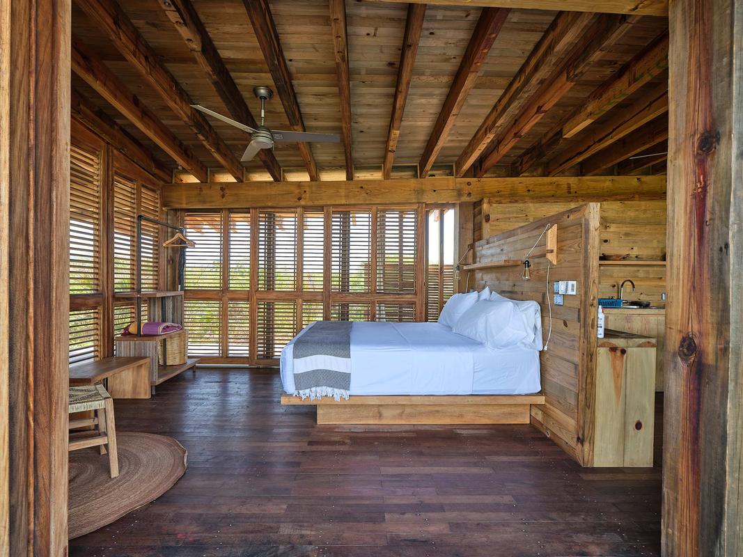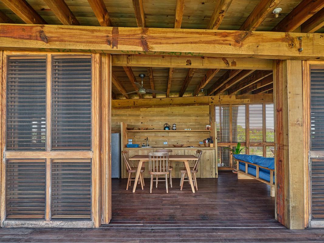 The villa is equipped with a kitchenette, a full bathroom, a living room, a dining area, a bedroom with a king-size bed, hammocks, and a fully furnished terrace, providing everything needed for a memorable stay.