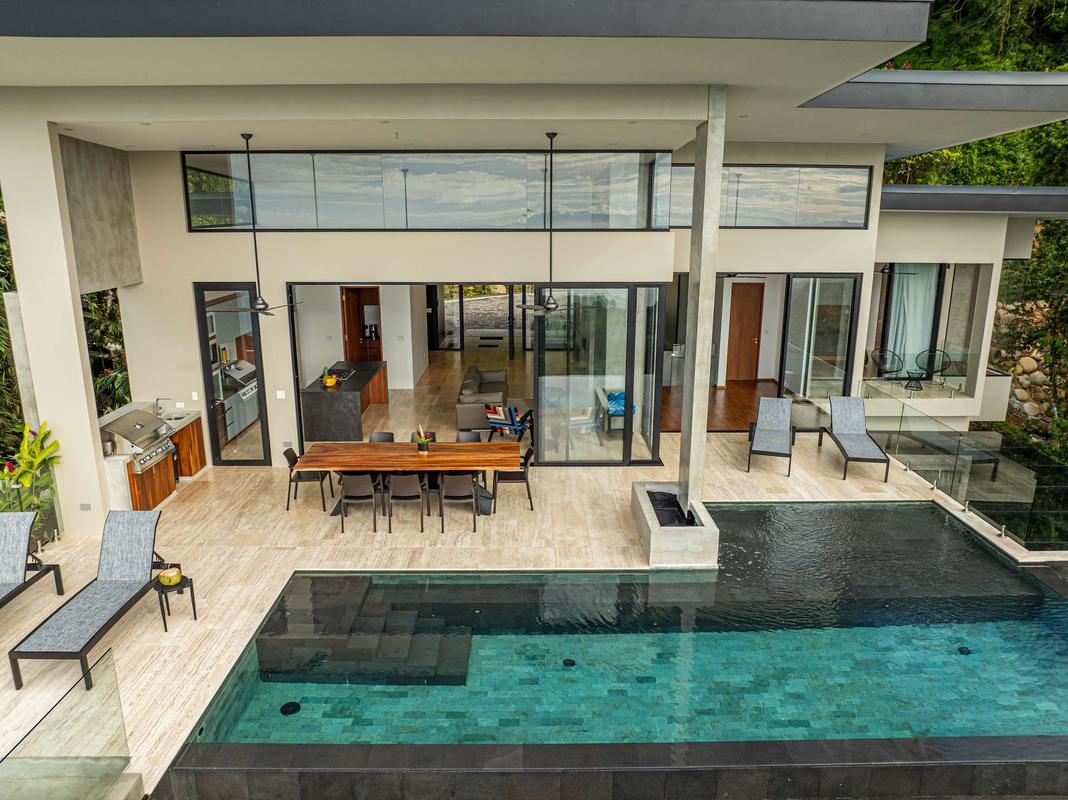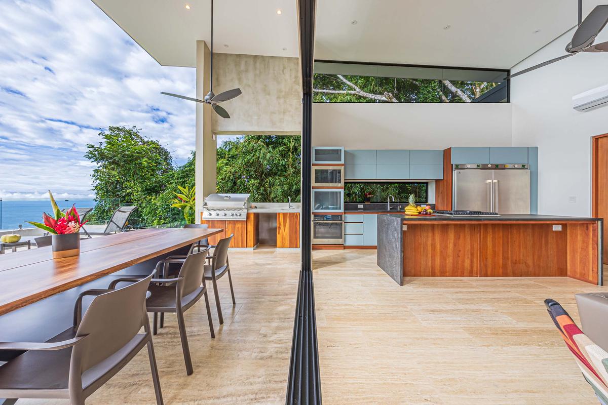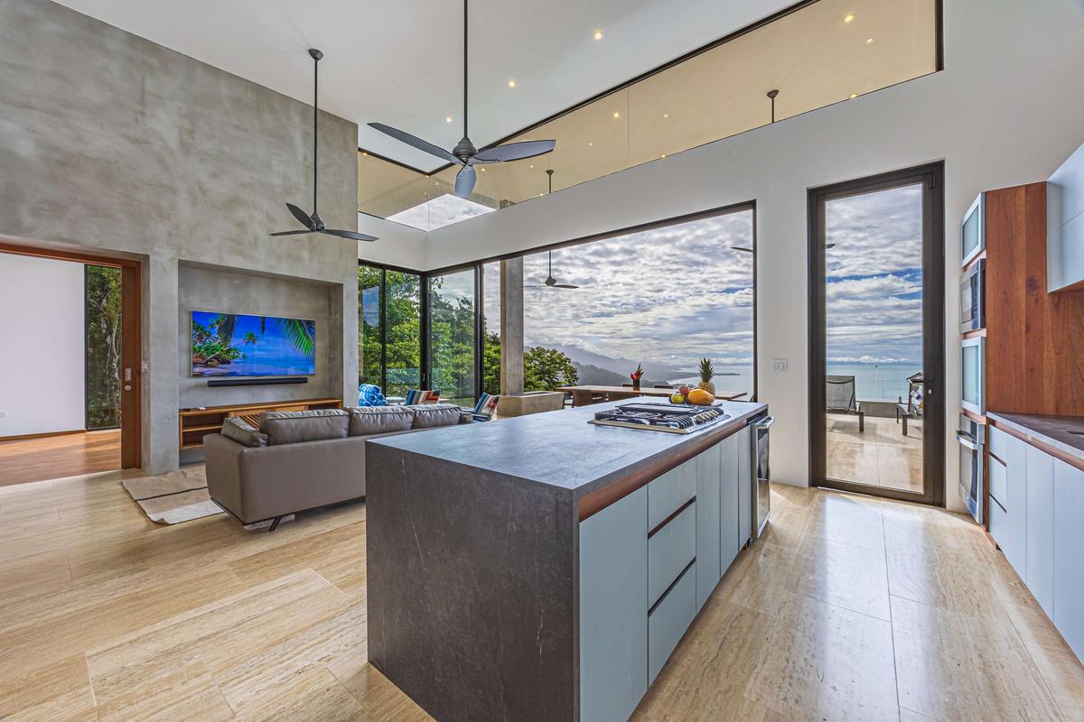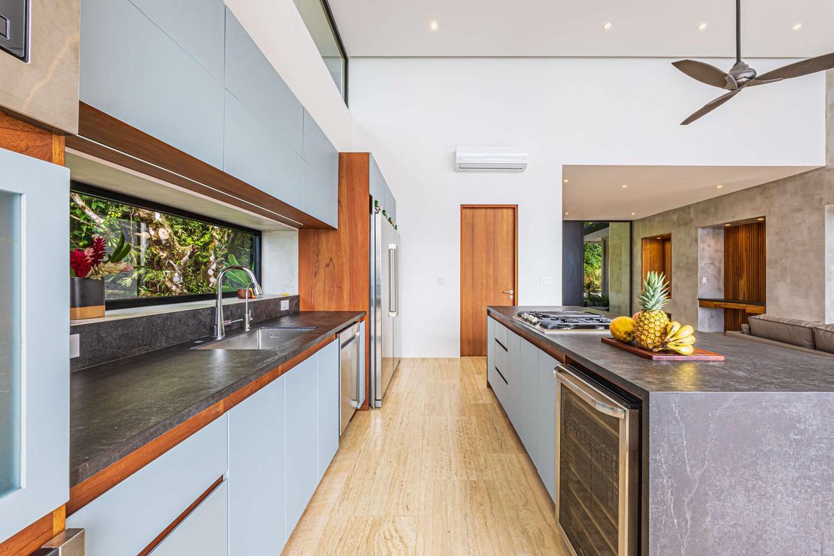 At the heart of the home is a fully equipped kitchen, ideal for preparing meals both indoors and out, and designed for unforgettable shared moments. Outside, you’ll find spaces made for pure relaxation: an infinity pool with ocean view, al fresco dining and lounging areas, an outdoor shower, cozy seating, and a fire pit perfect for stargazing nights. The entire space is surrounded by lush greenery and breathtaking views that invite you to disconnect and be present.