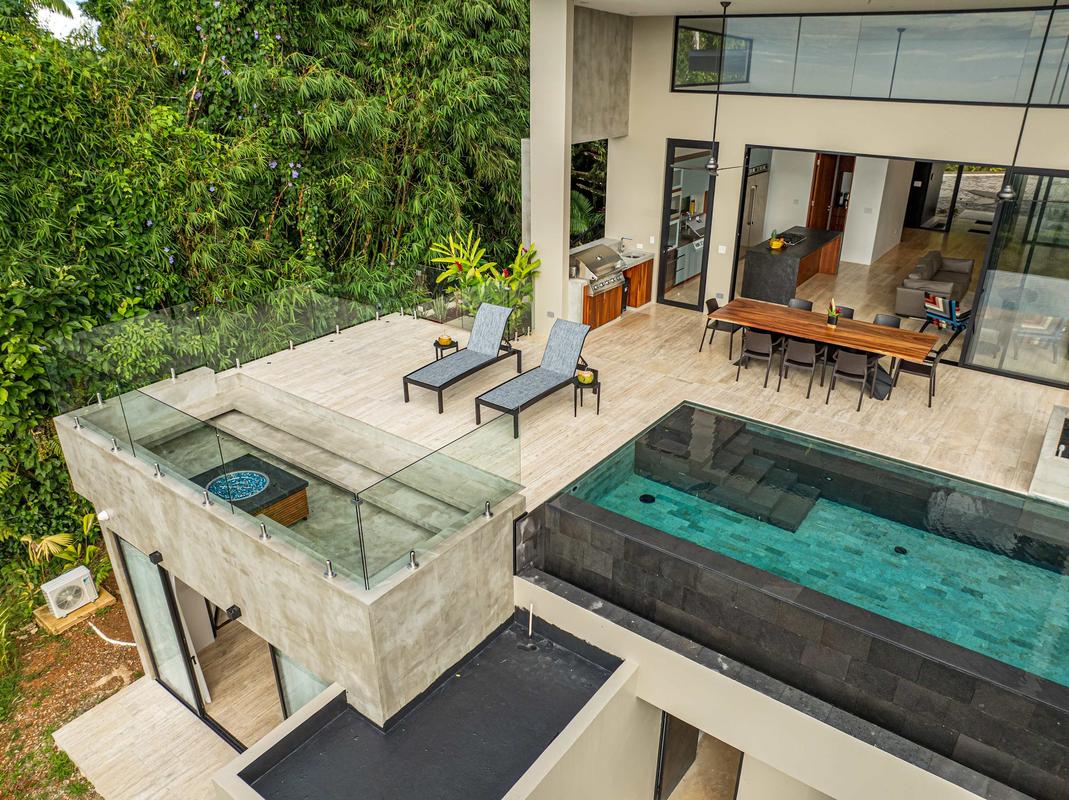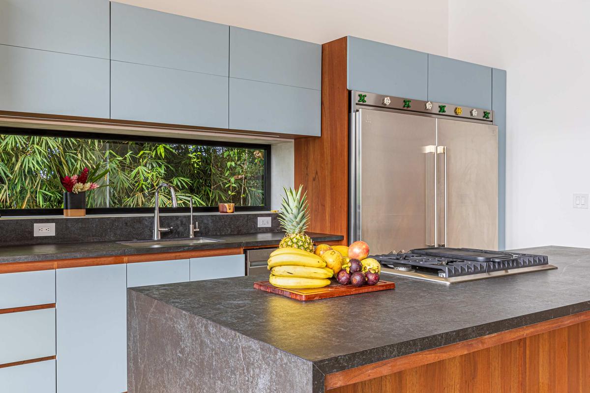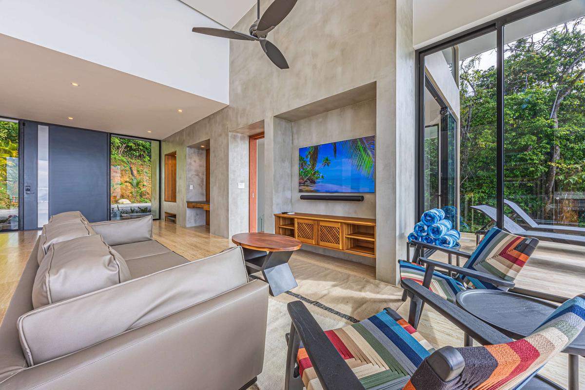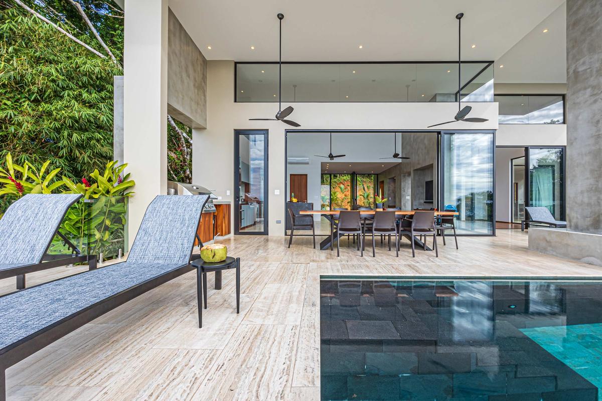 At the heart of the home is a fully equipped kitchen, ideal for preparing meals both indoors and out, and designed for unforgettable shared moments. Outside, you’ll find spaces made for pure relaxation: an infinity pool with ocean view, al fresco dining and lounging areas, an outdoor shower, cozy seating, and a fire pit perfect for stargazing nights. The entire space is surrounded by lush greenery and breathtaking views that invite you to disconnect and be present.