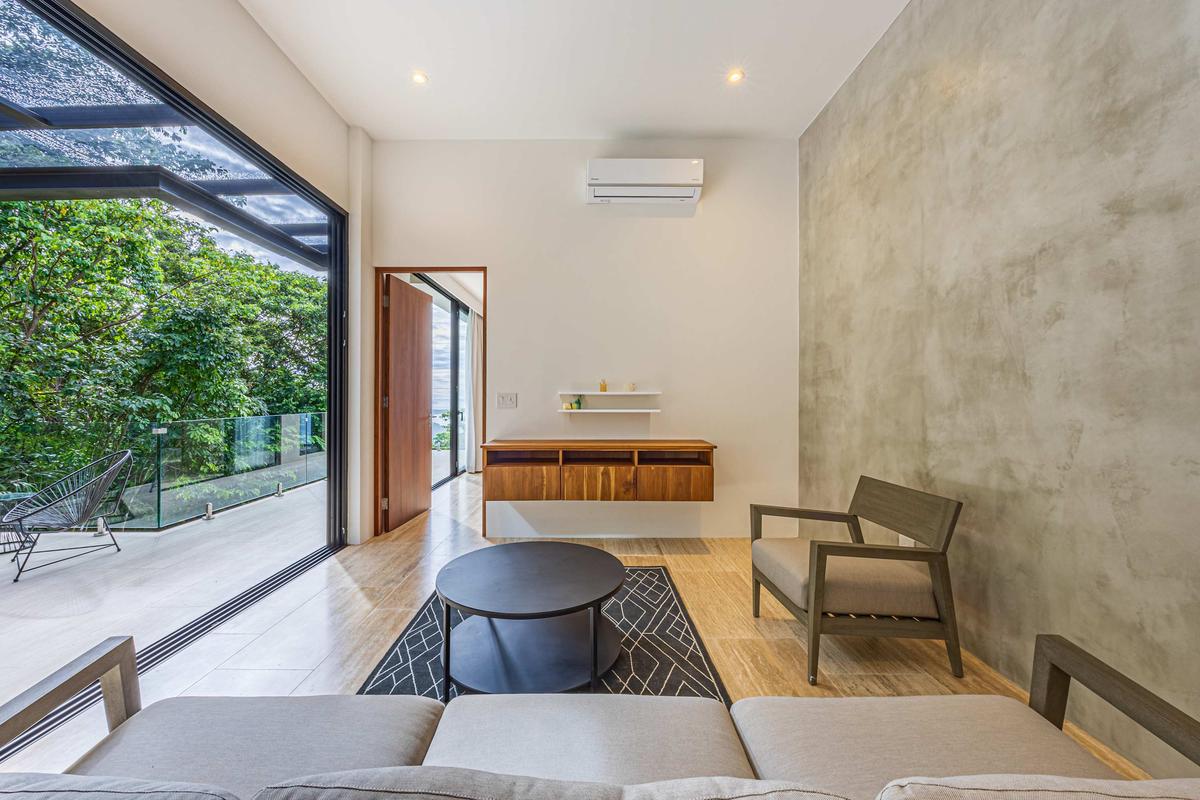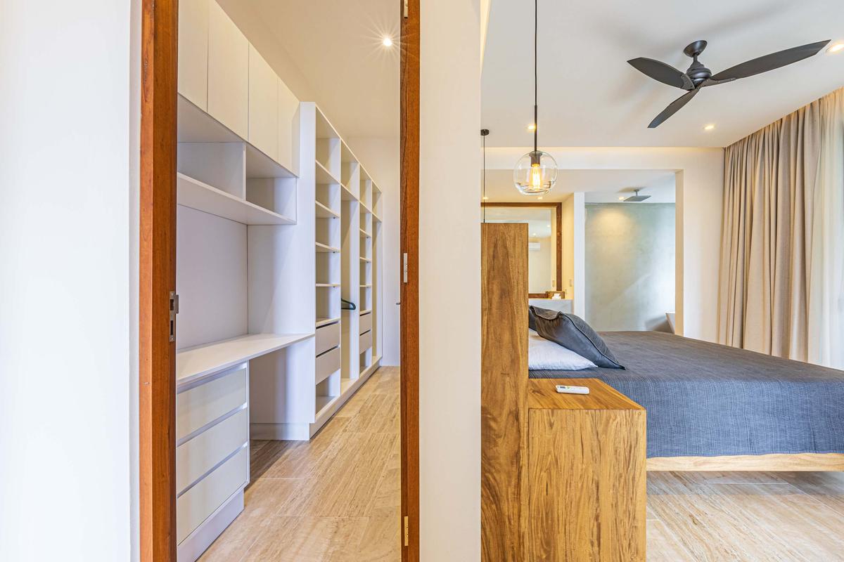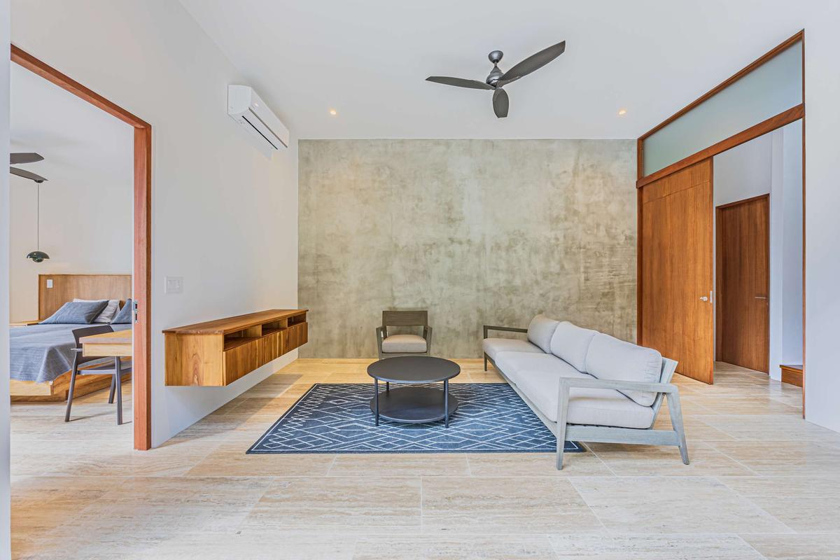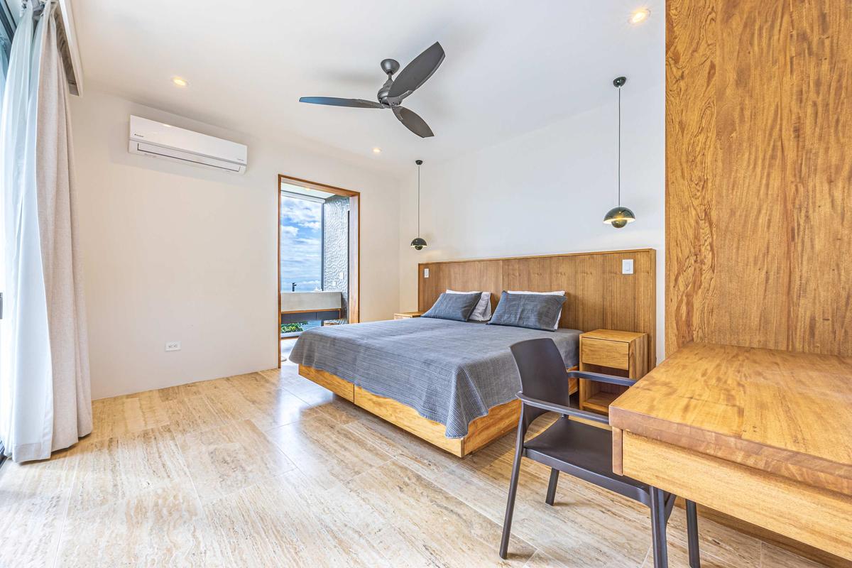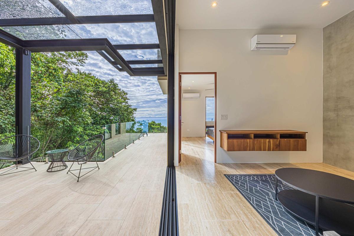 The home features four spacious bedrooms, each with its own private bathroom. Three are located in the main house, while the fourth has a separate entrance—perfect for guests seeking extra privacy or a quiet workspace. Each room offers a unique experience: one with a glass shower facing the ocean, another with a spa-style bathtub and indoor shower, and one with an outdoor soaking tub overlooking the sea. Three bedrooms are furnished with king-size beds (one of which can be converted into two twins), and the fourth has a queen-size bed.