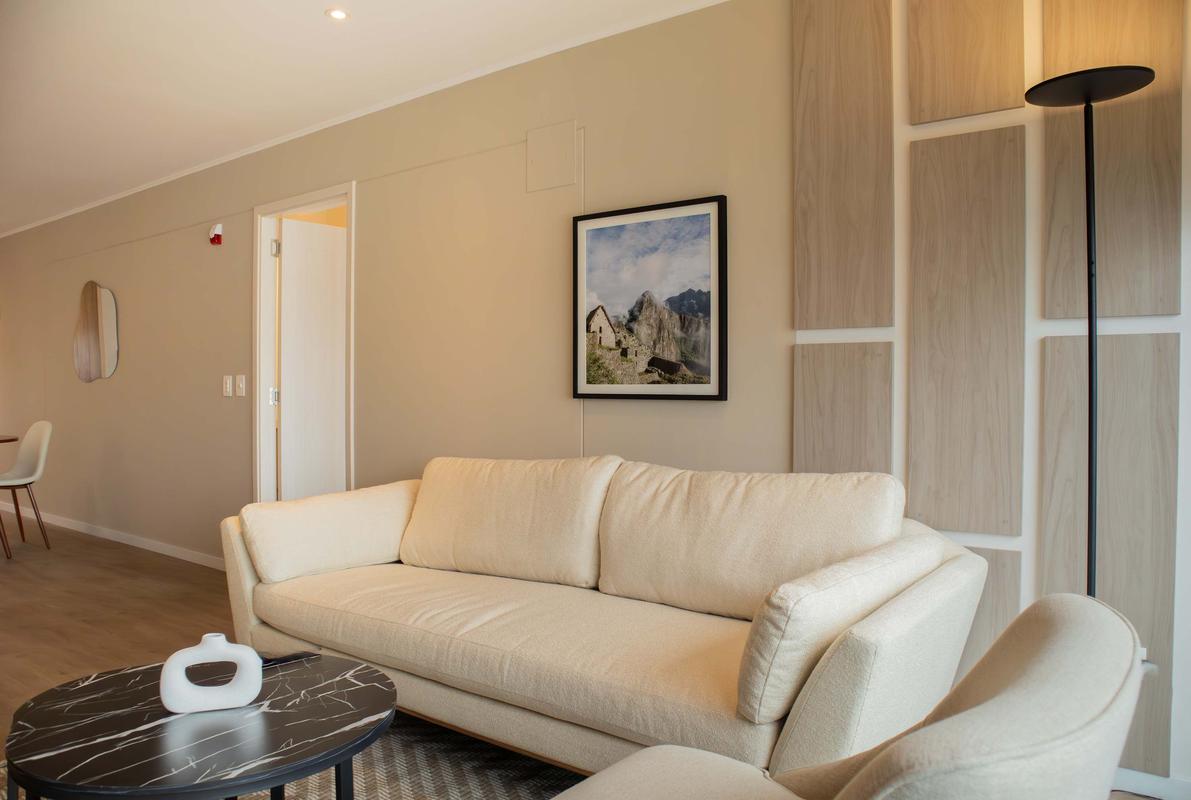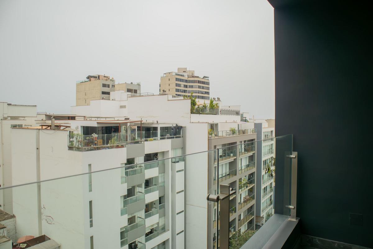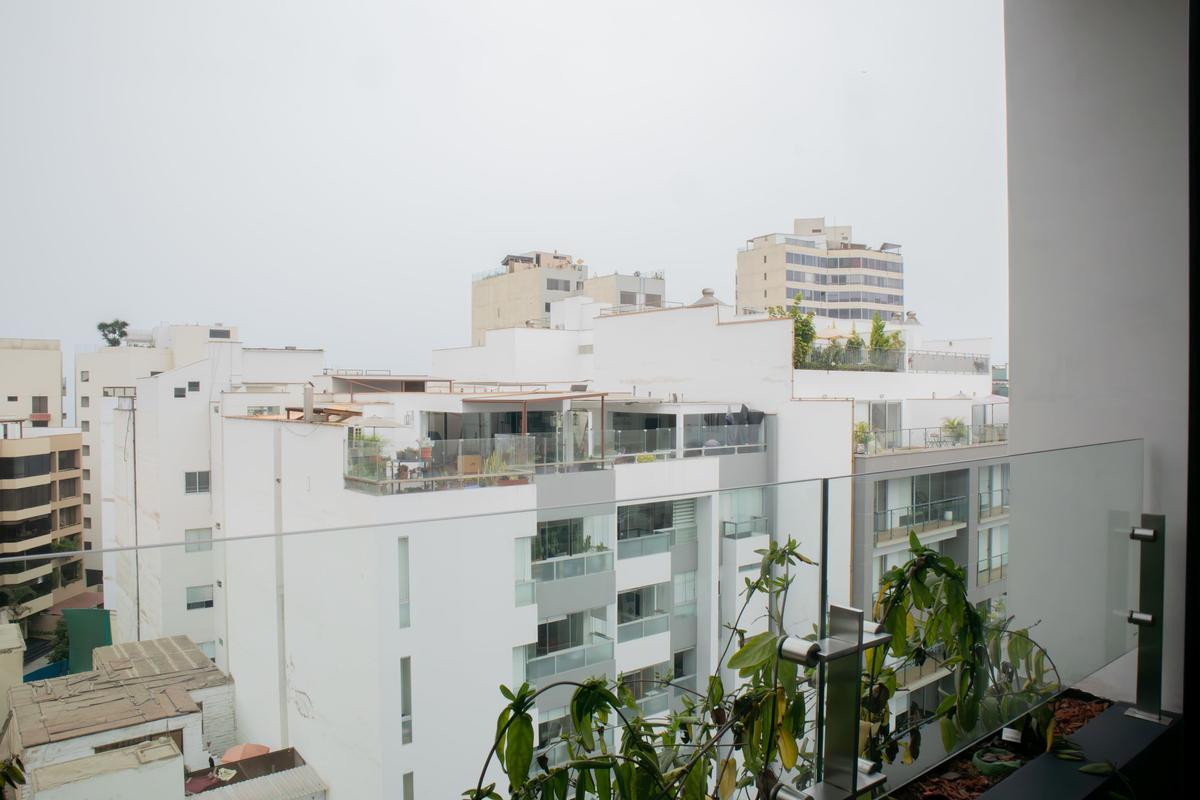 In the welcoming Miraflores neighborhood, this beautiful apartment it's very well located; just minutes away from Larcomar shopping center, Parque Kennedy, Virgen de Fatima Parish, and exclusive gyms. The area has currency exchange services, and labs centers in case you need to take a test, such as ROE and Multilab.