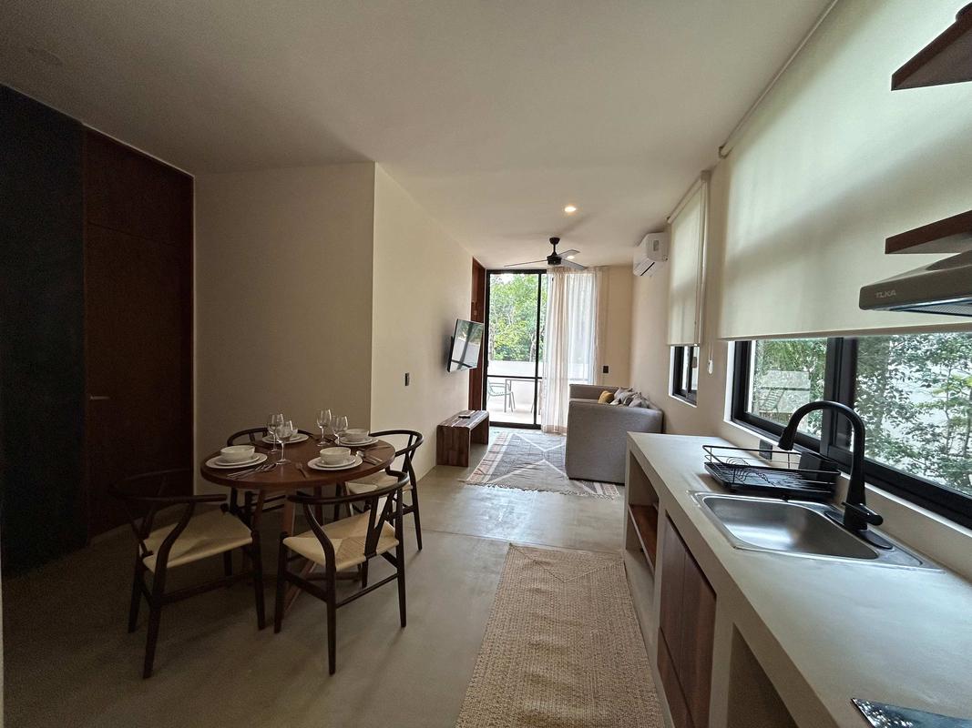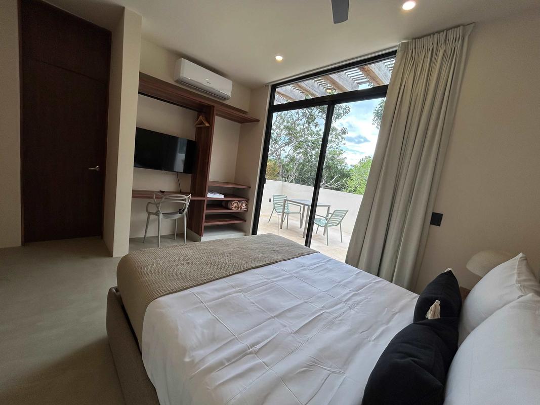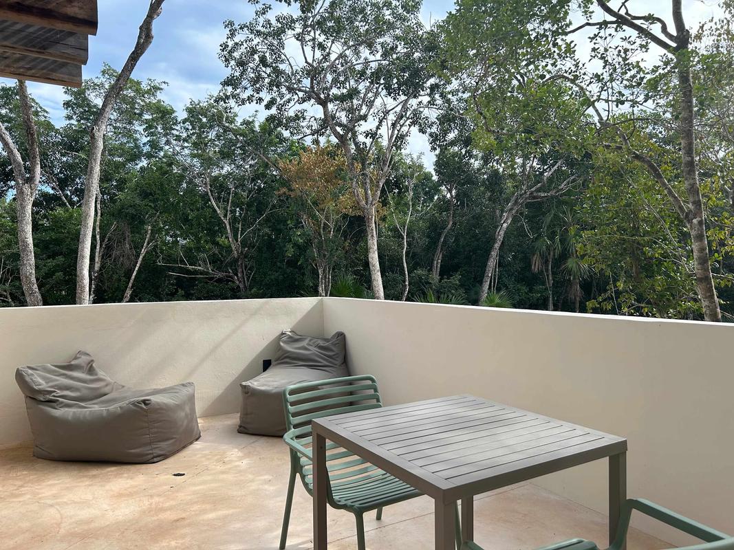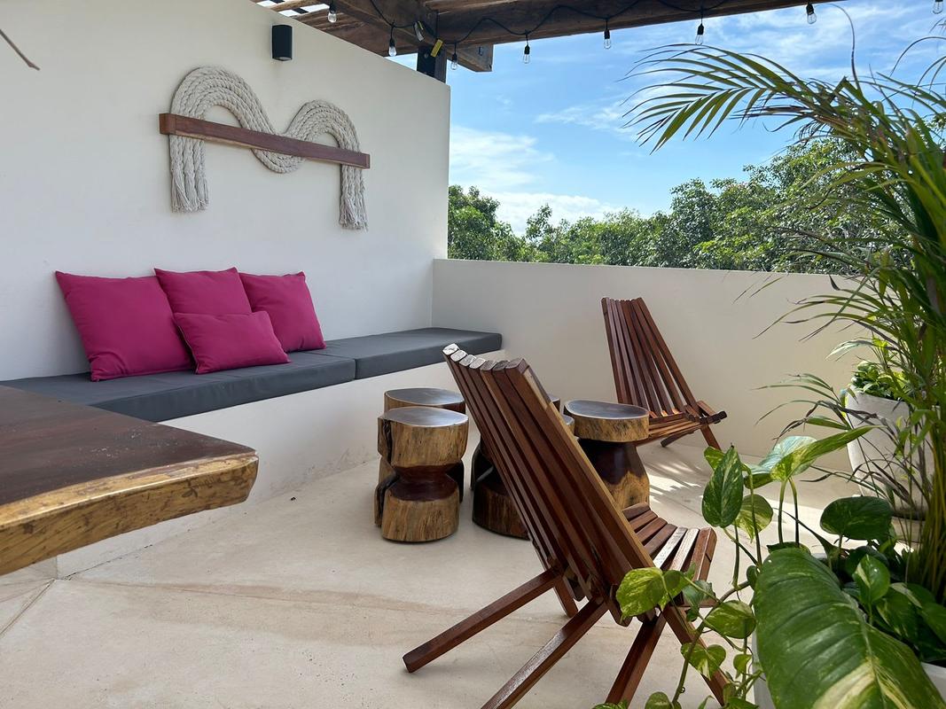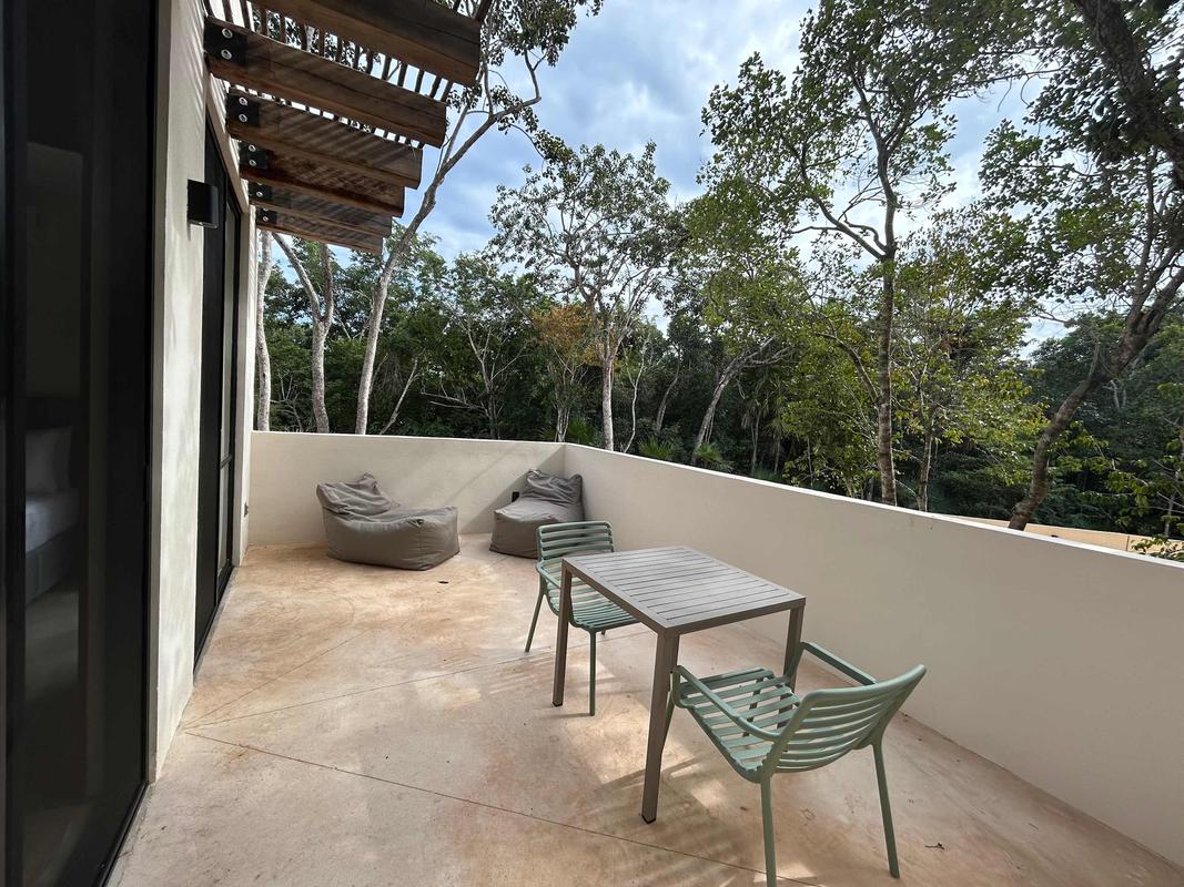 Located in the peaceful neighborhood of Villas de Tulum, this charming two-bedroom apartment offers the perfect balance between modern comfort and natural serenity. Enjoy your own oasis with a private rooftop terrace and a balcony overlooking the lush surroundings—ideal spaces to relax and disconnect.