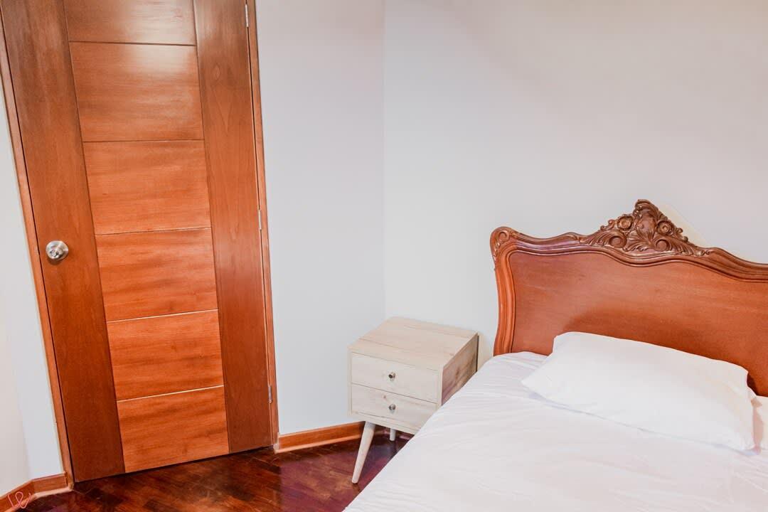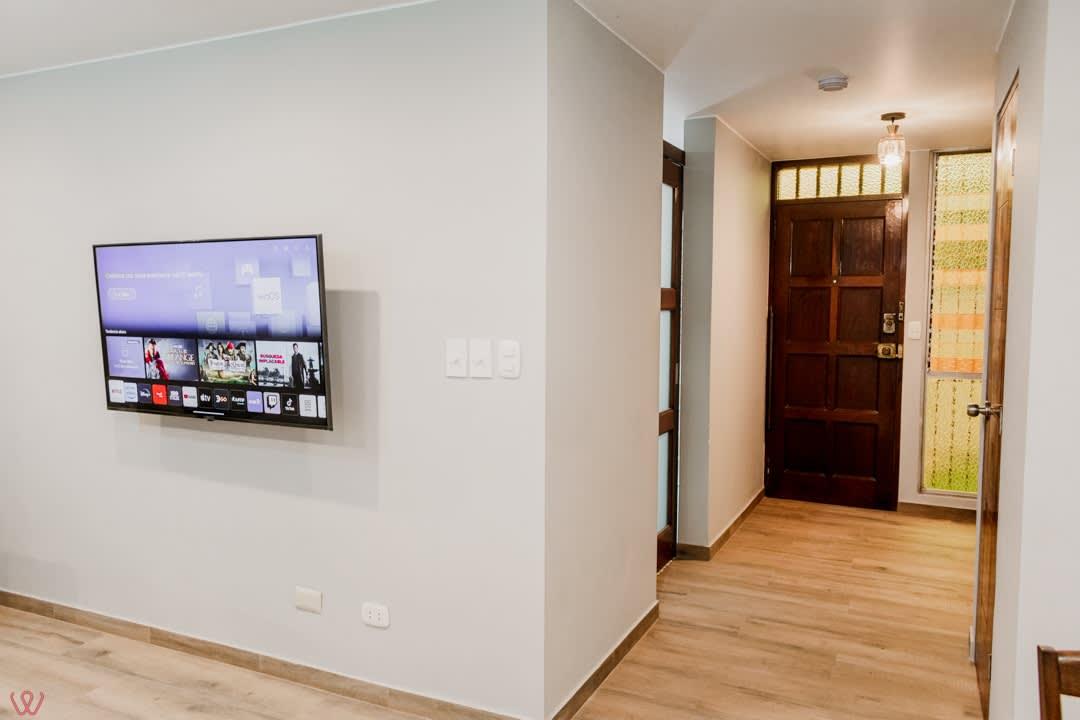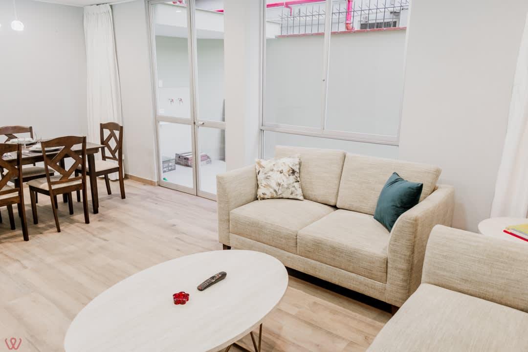 Spacious apartment at Luis Tapia García 399, San Borja, comfortably hosting up to 6 guests. It features two single beds, one Queen bed, one additional single bed, and 1.5 bathrooms. Fully equipped kitchen, bright living-dining area, and high‑speed Wi‑Fi. Located in a peaceful residential district with abundant parks, close to cultural landmarks such as the Museum of the Nation, the Huaca San Borja, and the serene Parque de la Felicidad