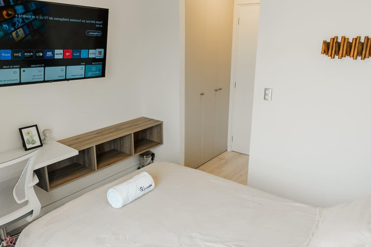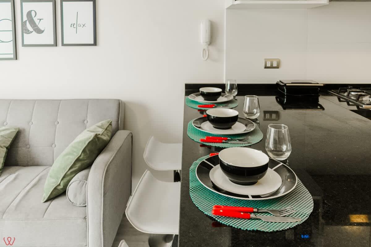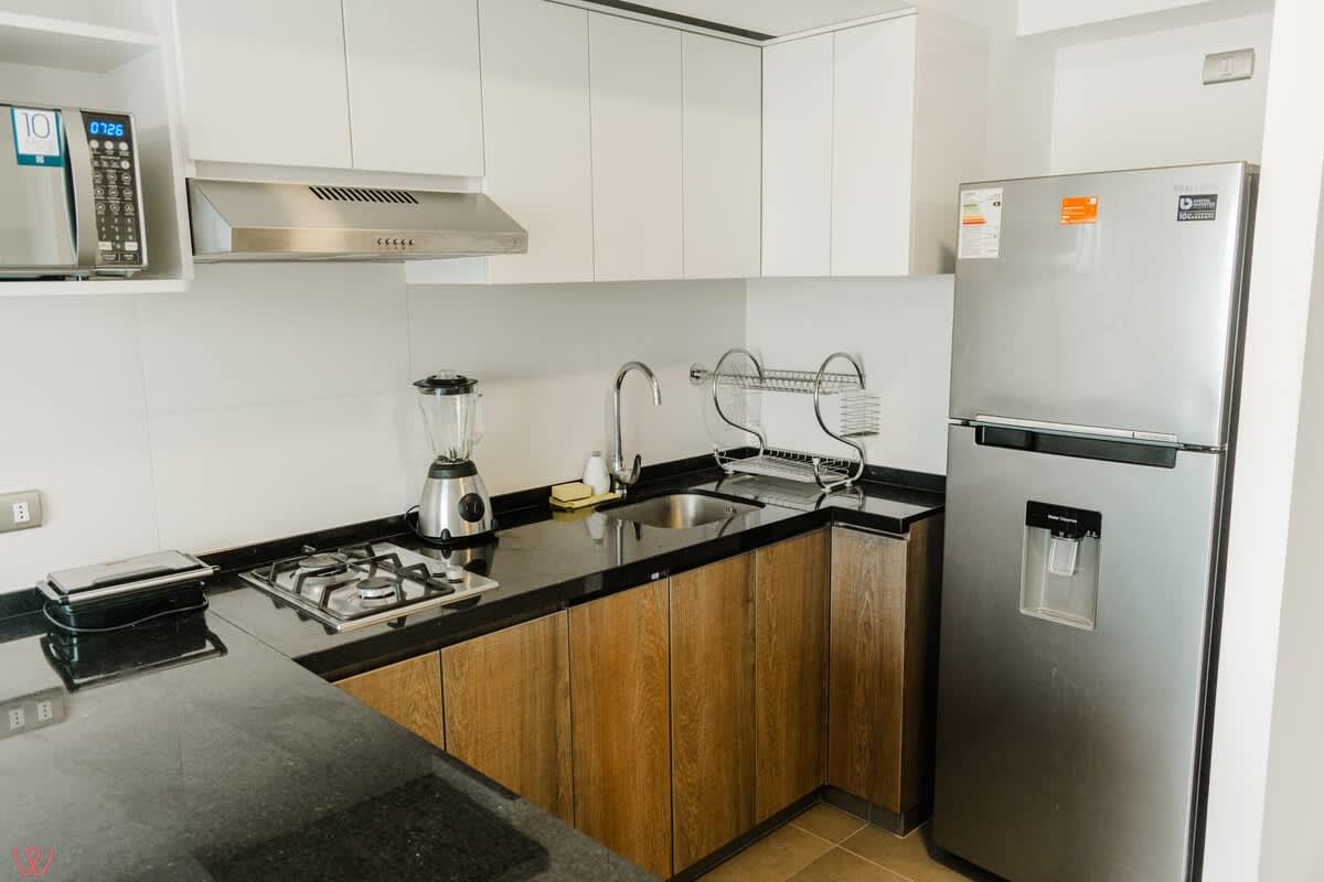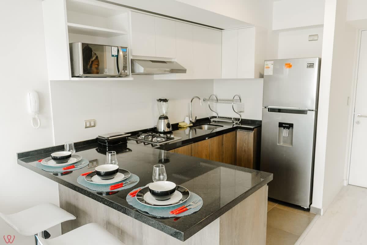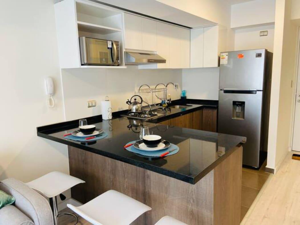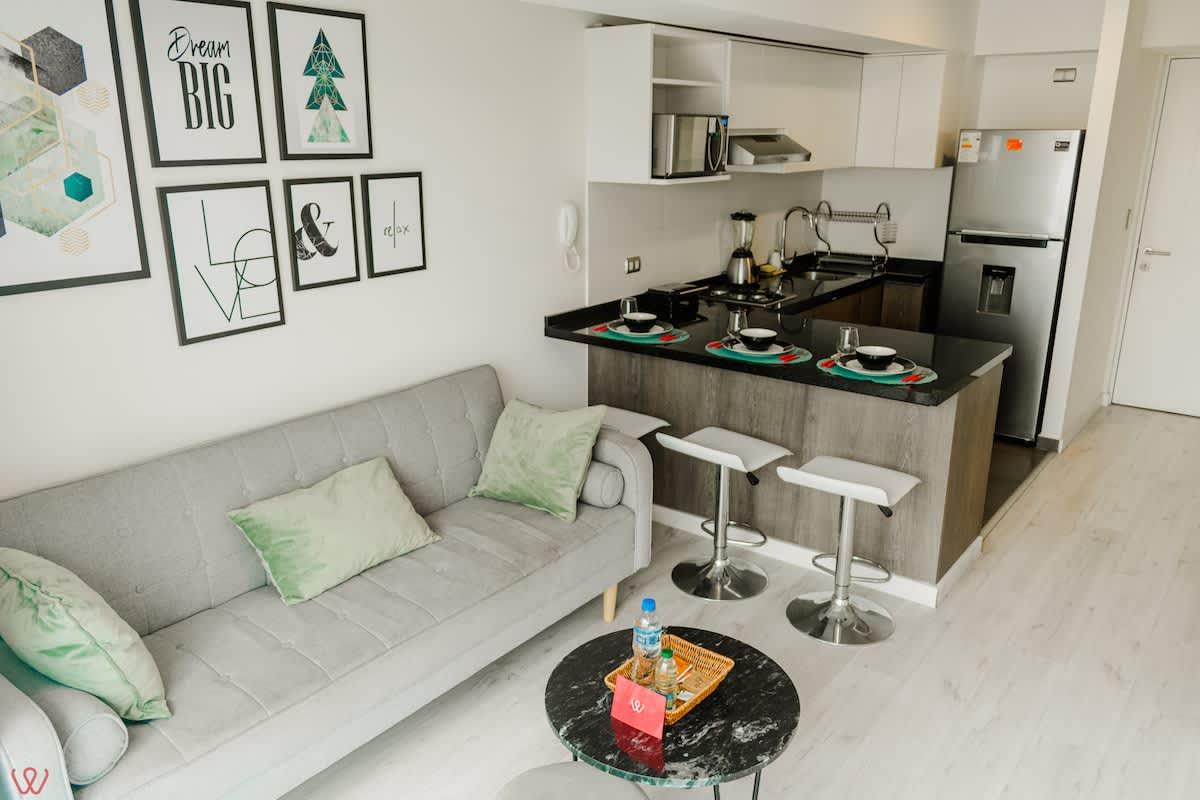 Modern and well-located apartment in Surquillo, ideal for couples or solo travelers. It features a cozy bedroom with a double bed, a full bathroom, high-speed Wi-Fi, a fully equipped kitchen, and a bright living-dining area. Situated on República de Panamá Avenue, in a safe building with elevator access. Just minutes from Miraflores, San Isidro, cafés, supermarkets, and public transport. Perfect for business trips, vacations, or longer stays.