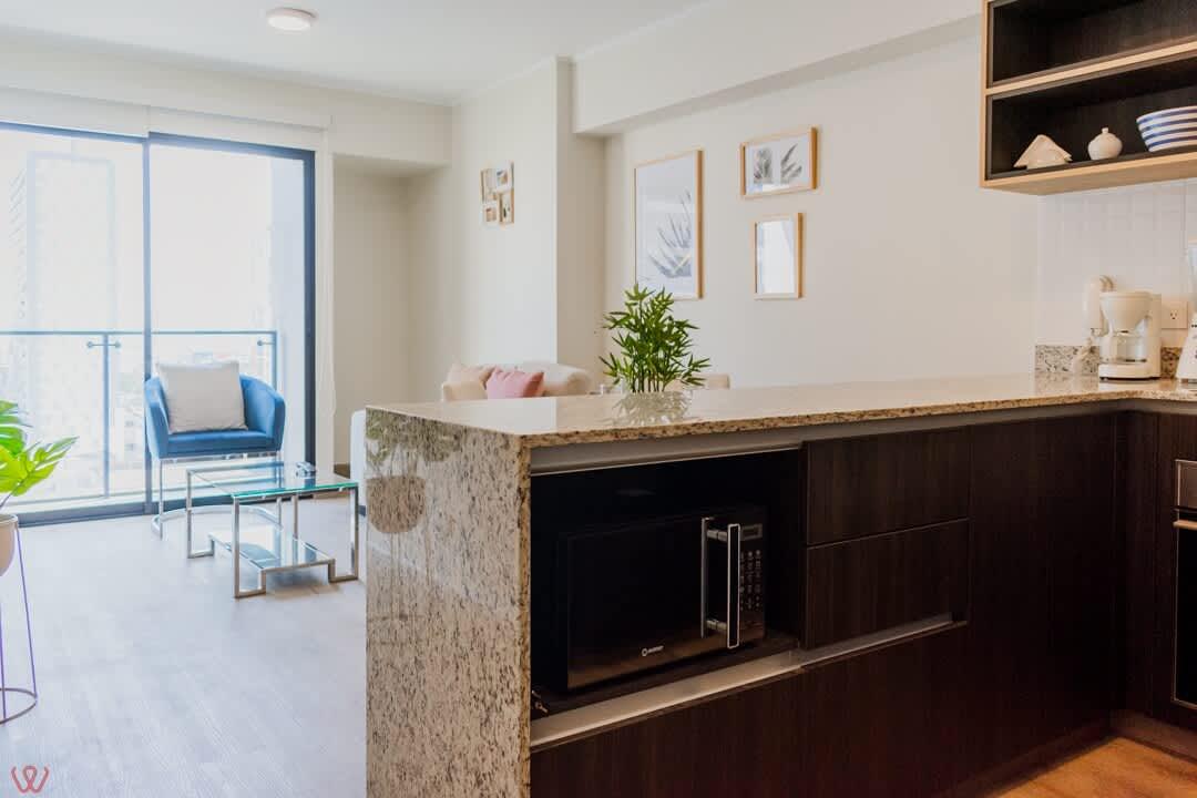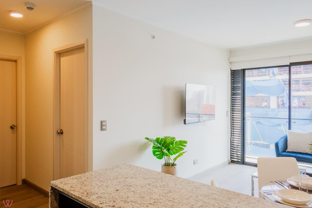 Spacious and well-appointed apartment located at Avenida Pablo Carriquiry 894 in San Isidro. It features one Queen-size bed, one double bed, two full bathrooms, a fully equipped kitchen, a bright living and dining area, and high-speed Wi-Fi. Situated in a secure and peaceful neighborhood, close to business centers, parks, restaurants, and public transportation.