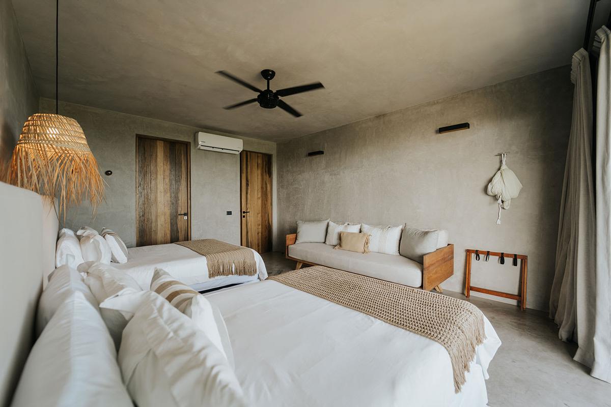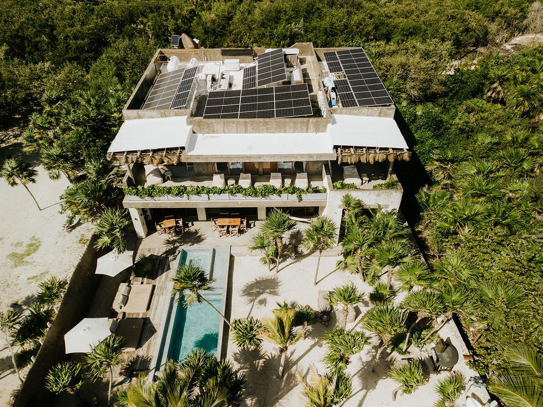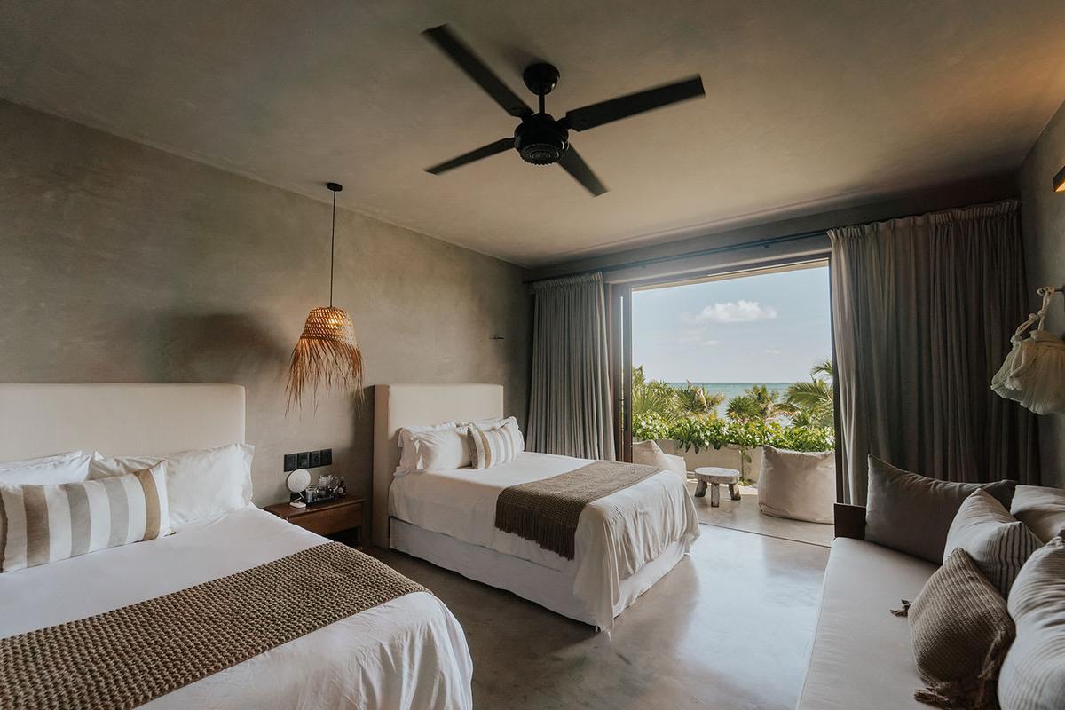 Designed for group enjoyment, this spectacular beachfront villa offers a wide and exclusive private beach—perfect for sunbathing or spending afternoons with friends. During the day, the pool is the ideal spot to cool off, while in the evening, the heated jacuzzi becomes a favorite place to relax and unwind. The bedrooms evoke a boutique hotel feel, with elegant finishes, ocean views, and direct access to sea-facing terraces. The layout is ideal for groups of up to 14 guests, with three bedrooms featuring king-size beds and two bedrooms with two queen-size beds each. All rooms have private bathrooms and thoughtful comfort details, perfect for extended stays. One of the most appreciated features is the private chef service, available from 8:00 AM to 8:00 PM, praised for its personalized attention and the quality of freshly prepared meals (groceries are billed separately). The villa also includes concierge service before and during your stay, daily housekeeping, and high-speed Starlink satellite internet for those who need to stay connected. Located within a gated community with 24/7 security, the property combines privacy, nature, and five-star service. Guests also have direct access to kayaks and paddle boards to explore the bay, making it the perfect starting point for water adventures. It’s also pet friendly—pets are welcome with prior approval. Fully powered by solar energy, this villa is a harmonious blend of luxury and sustainability. A true retreat on the Tulum coast, where every space has been designed to relax, reconnect, and create unforgettable memories with your loved ones. IMPORTANT INFORMATION Cancellations made up to 65 days before arrival will be fully refunded. After that, no refunds will be issued under any circumstances. Check-in / Check-out: Check-in from 3:00 PM | Check-out by 11:00 AM Maximum capacity (14 guests): Additional visitors require prior approval and the purchase of day passes. Neighborhood respect: Quiet hours begin at 10:00 PM. Parties and noise: Loud parties and external sound systems are not permitted.