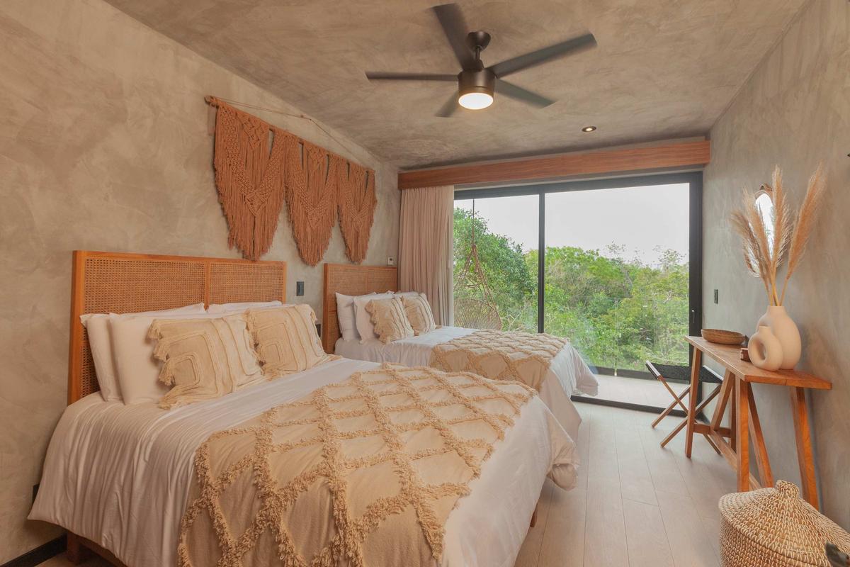This new and bright penthouse has been designed to offer you an unforgettable stay. It features a spacious kitchen, three full bathrooms, one bedroom with a king-size bed, and another with two double beds. Everything is thoughtfully prepared for your comfort: high-quality linens and pillows, modern spaces, and a balcony overlooking the jungle—perfect for enjoying the sunset every afternoon from the hammock.