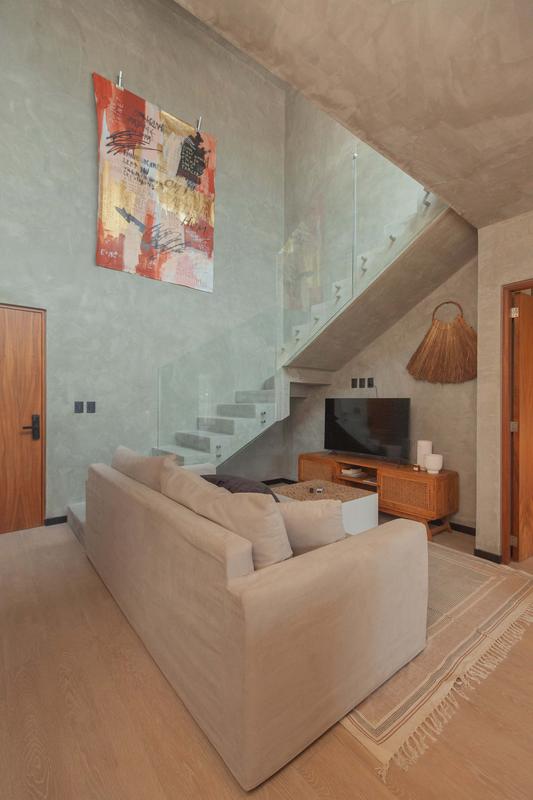 Additionally, the complex offers an impressive shared rooftop pool with lounge chairs and an outdoor shower, perfect for sunbathing and enjoying the views. Tuk Tulum combines modern design with the essence of the jungle and also features a gym (with fee), spa, padel court, restaurant, and an art walk that reflects the vibrant local style.