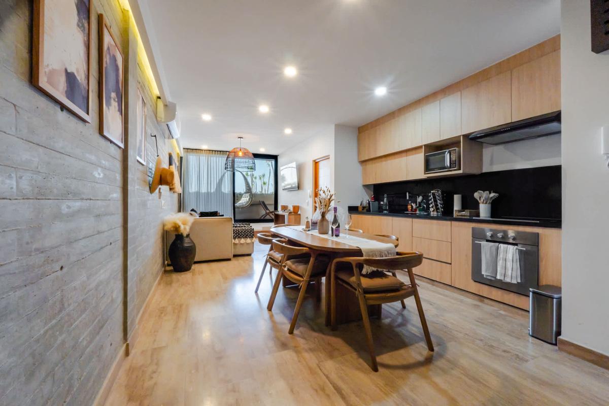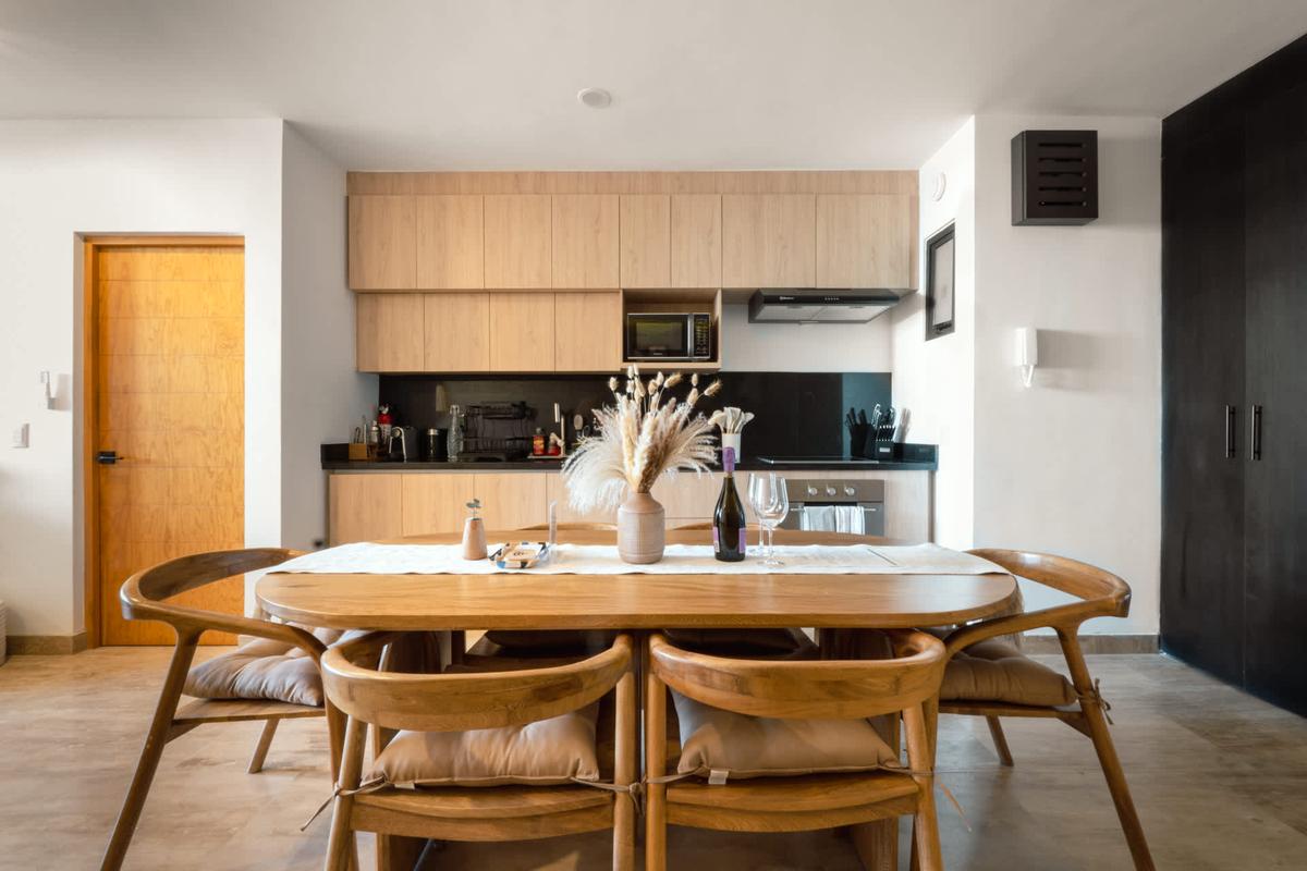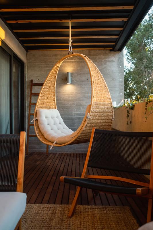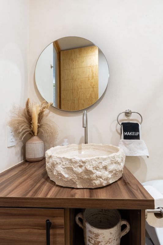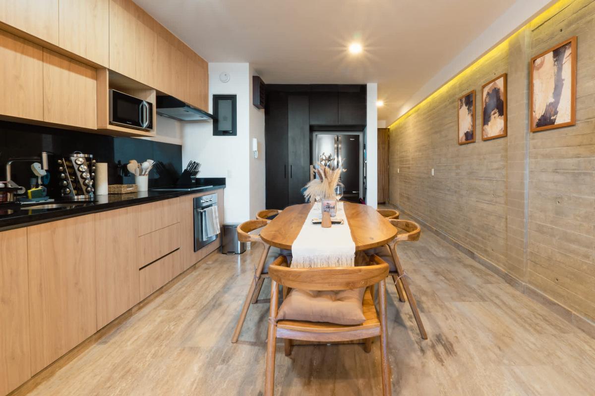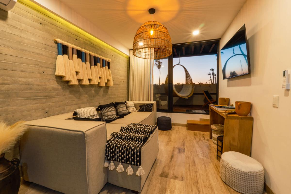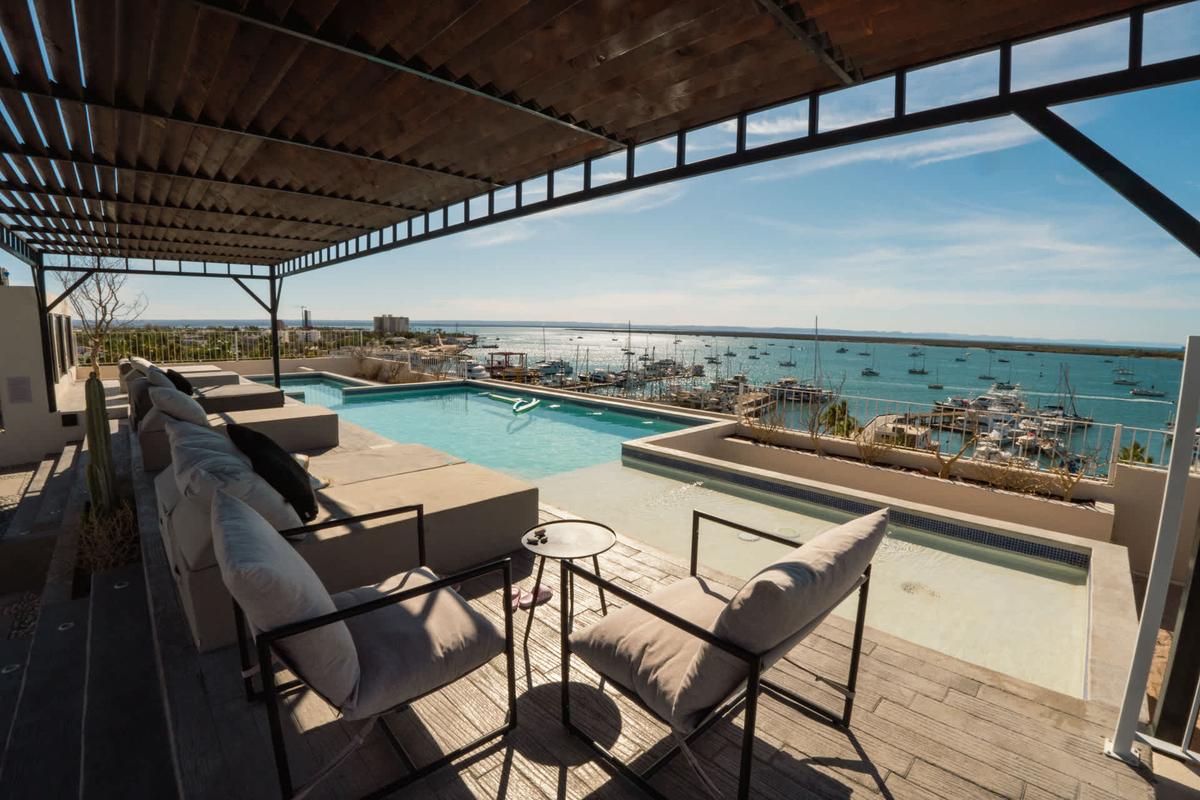 The building’s shared amenities include a rooftop with a pool offering spectacular views of the bay and the city of La Paz. There is also a smaller pool, a fully equipped gym, a pergola with a grill, and a relaxing lounge area with light wooden structures and flowing fabrics. The rooftop also features a scenic lookout at the highest point and full restrooms for both men and women.