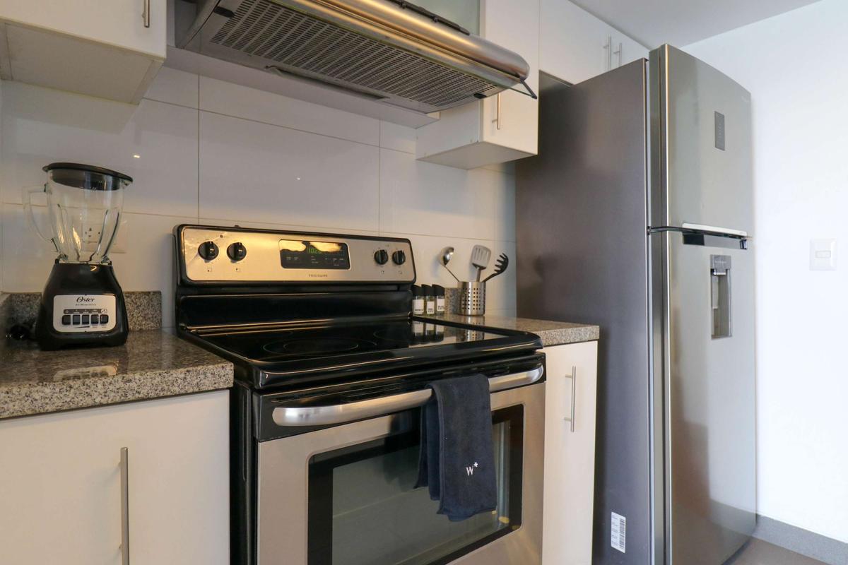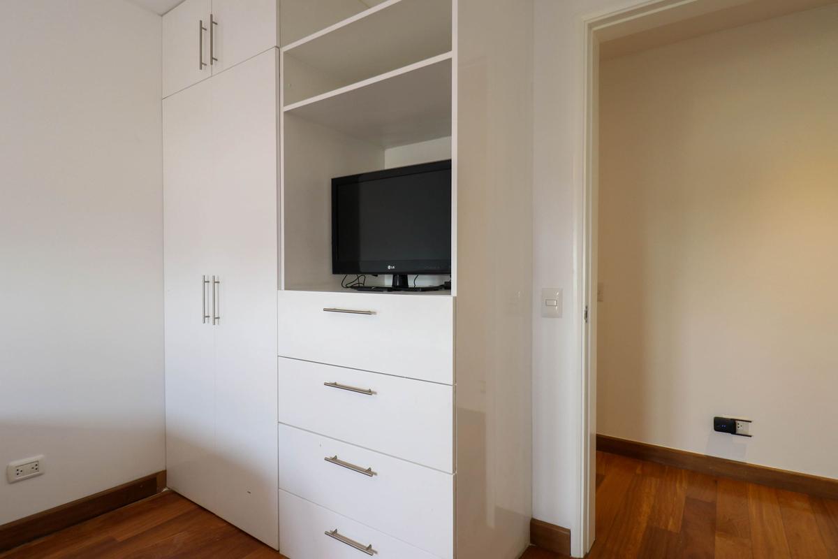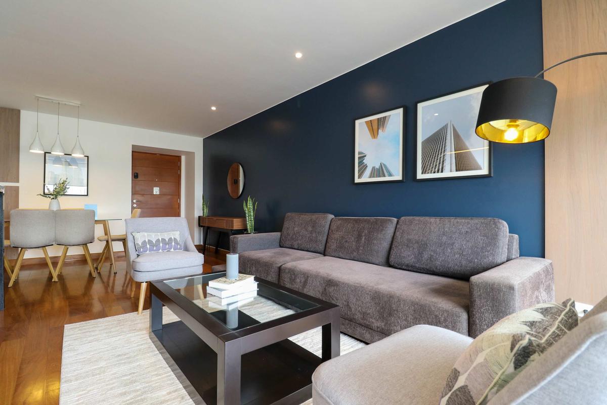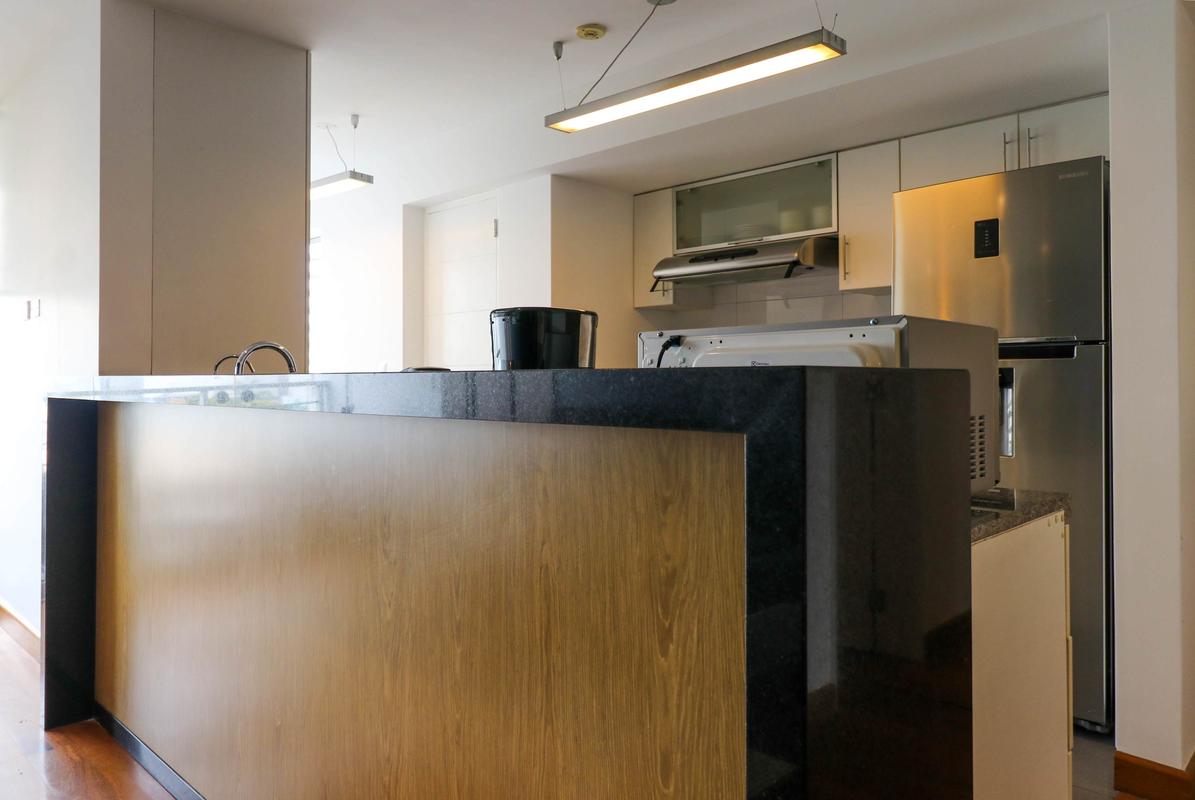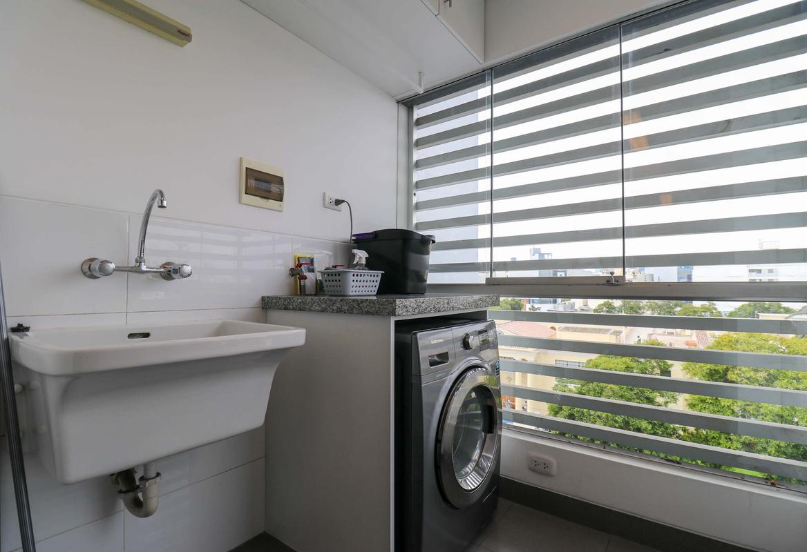 In the welcoming Miraflores neighborhood, this beautiful apartment it's very well located; just minutes away from Larcomar shopping center, Parque Kennedy, Virgen de Fatima Parish, and exclusive gyms. The area has currency exchange services, and labs centers in case you need to take a test, such as ROE and Multilab.